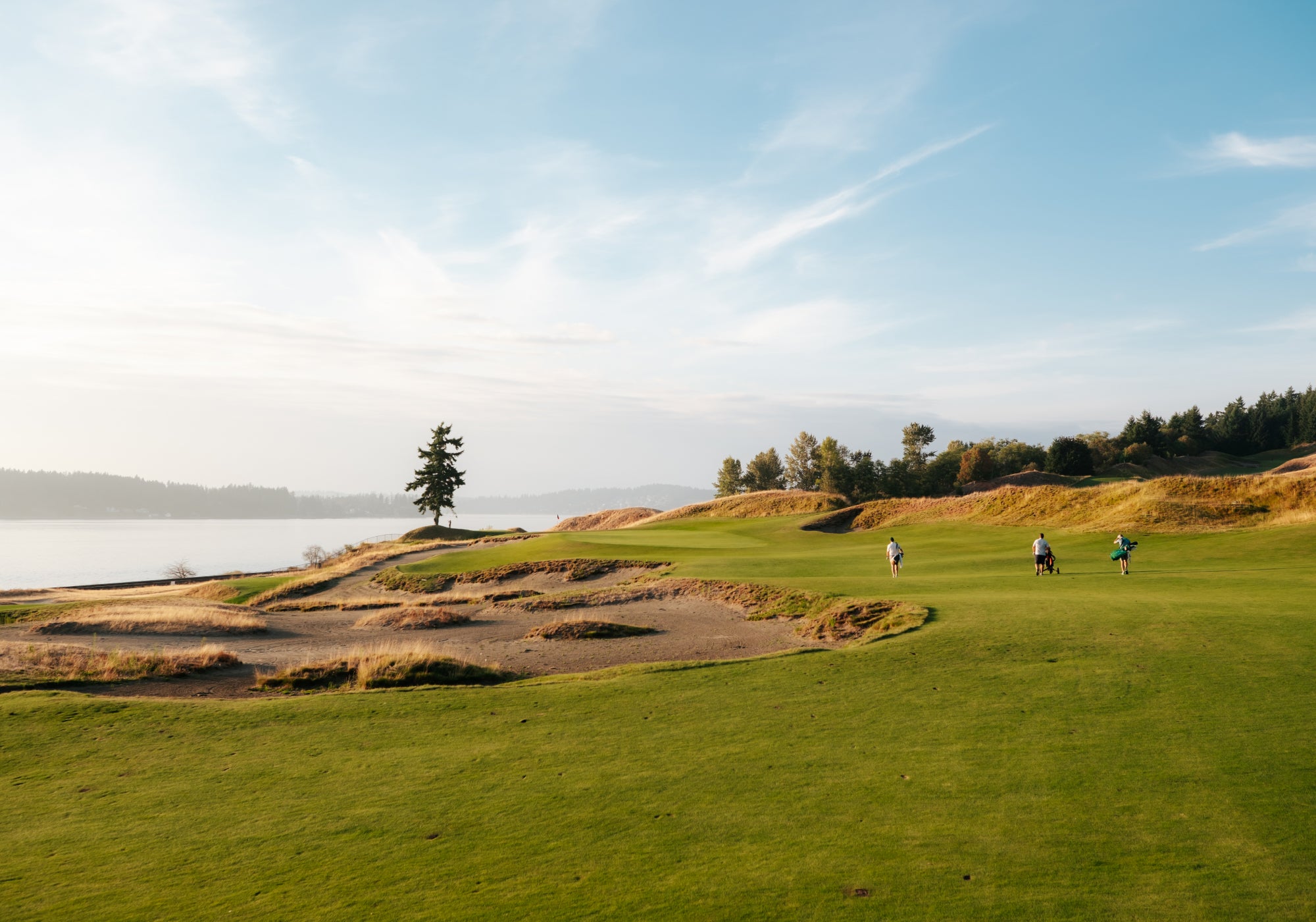 Chambers Bay is a test of creativity, precision, and nerve. With its sprawling fescue grasses, towering sand dunes, and breathtaking views of Puget Sound and the Olympic Mountains, this Robert Trent Jones II design is the closest you’ll get to true Scottish links golf without crossing the Atlantic.